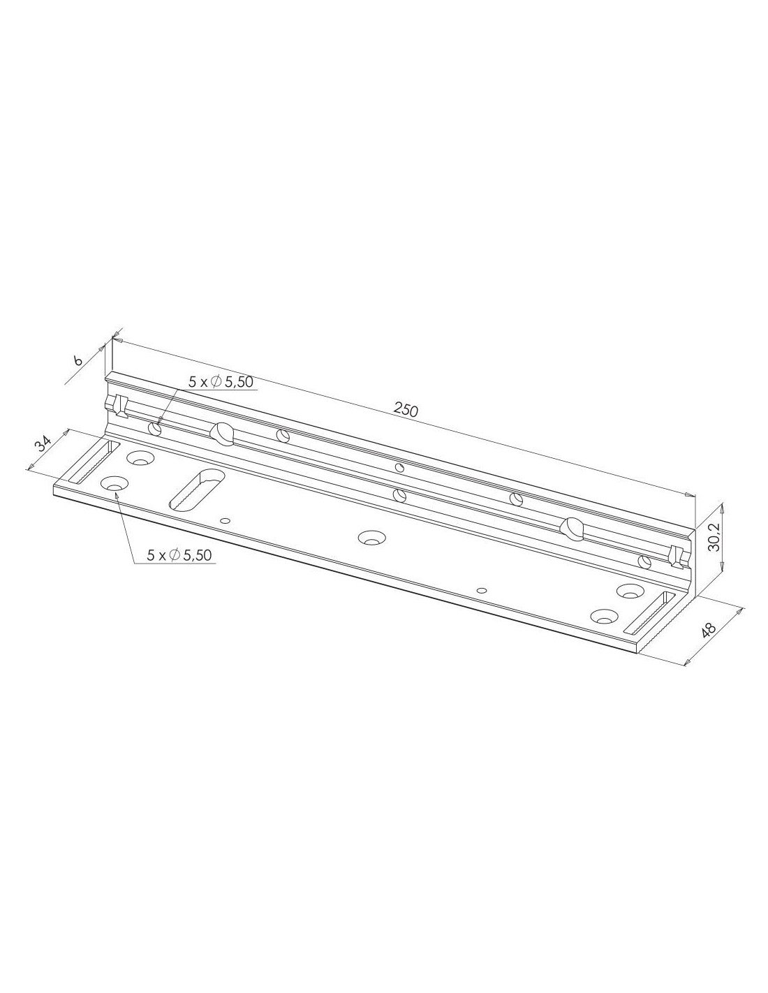 Cette équerre est fabriquée en aluminium 6061/T6 afin d'avoir une meilleure résistance à la déformation ou à la rupture sous contrainte. Elle se fixe sur le linteau avec plusieurs possibilités de vissage selon la configuration.